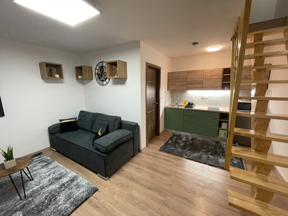 U samom centru Osijeka, preko puta autobusnog kolodvora nalazi se ovaj u potpunosti renoviran apartman. Dnevna soba, sa kuhinjom, kupaonica, te spavaća soba sa bračnim krevetom.